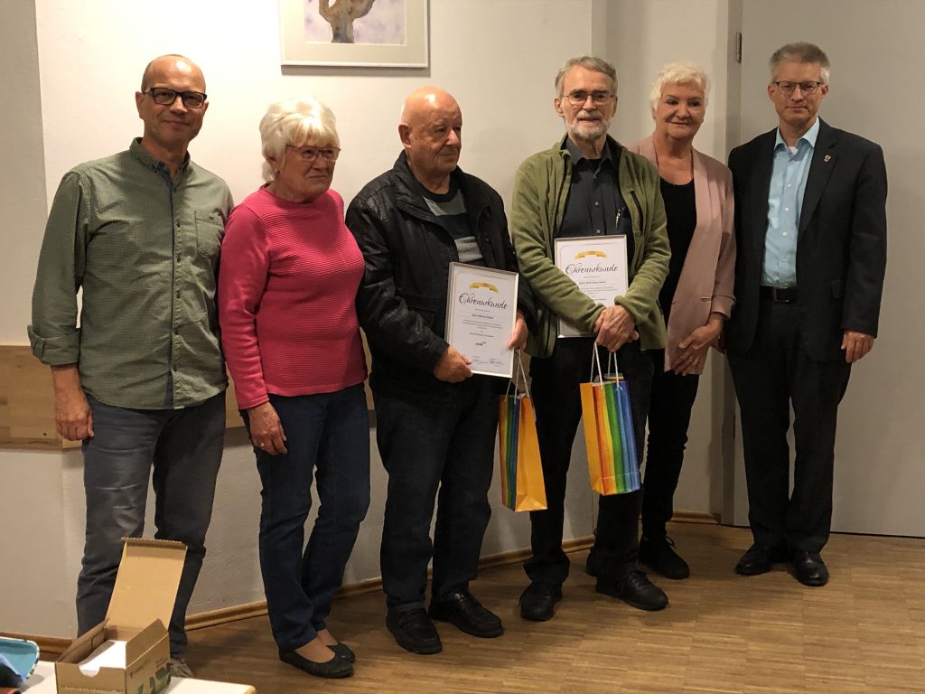 wurden zu Ehrenvorsitzenden unseres Vereins ernannt. Die Vorsitzenden überreichten die Ehrenurkunden mit einer kleinen Anerkennung.